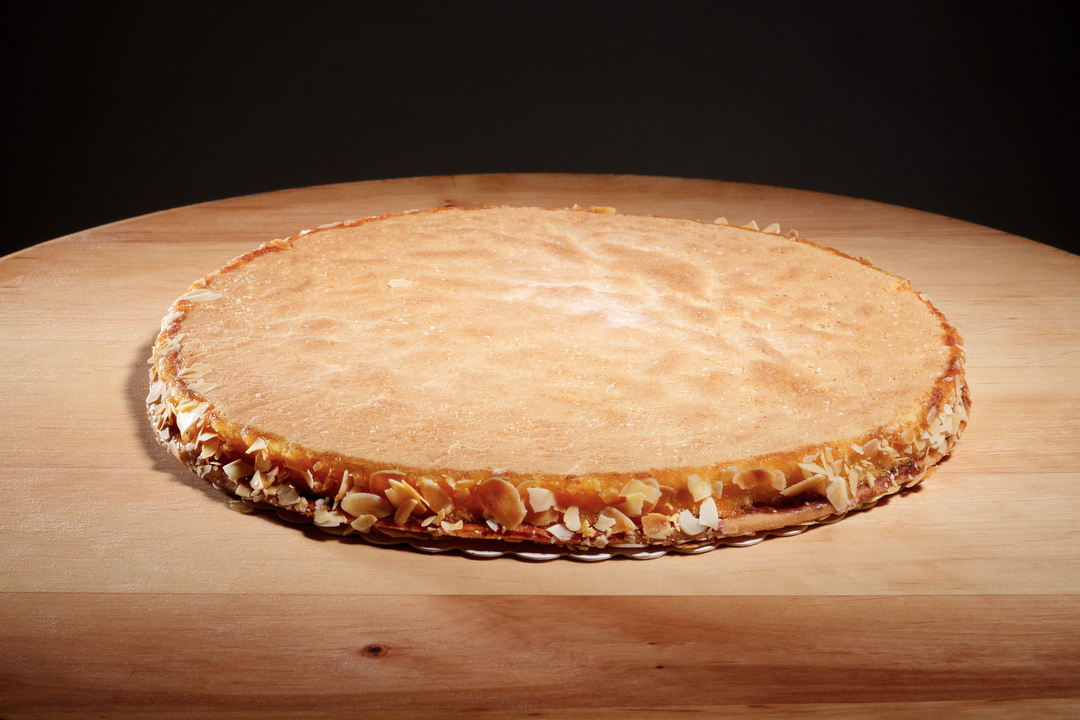 | Info | Unser Obstboden. Wiener Masse auf einem Kuvertüre - Mürbeteig, umrandet von Mandeln und veredelt mit Aprikosenkonfitüre. Ideal zum Belegen mit frischen Erdbeeren oder anderen Früchten. |